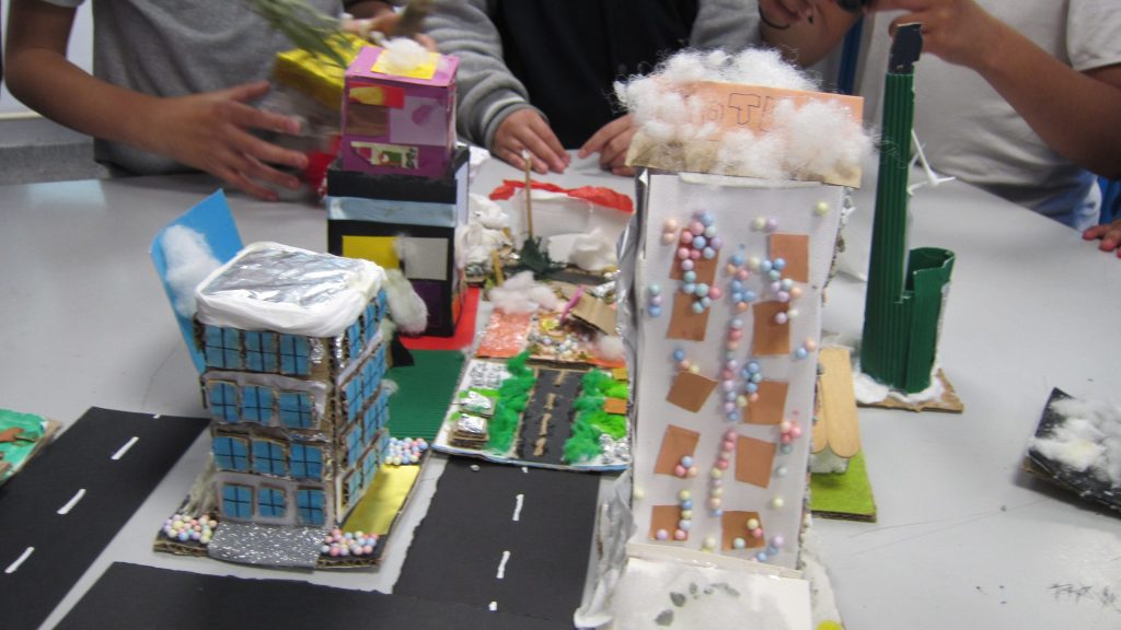 Pour clôturer ce projet, les réalisations individuelles ont été assemblées pour former une ville miniature foisonnante. Ce travail collectif a permis aux élèves d’appréhender les notions d’échelle et de densité urbaine. Nous vous invitons à découvrir les photos de cette métropole imaginaire en galerie !
