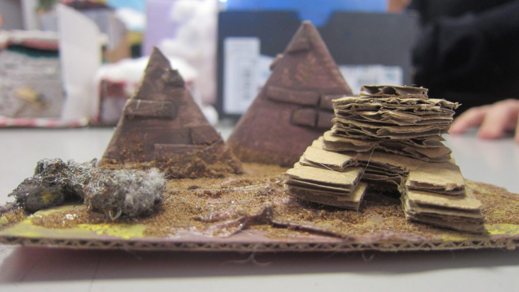 Le défi était de taille : concevoir une maquette sur une base contrainte de 12×12 cm, tout en explorant le potentiel tactile et visuel des matériaux. Carton, tissu, sable, métal ou récupération… chaque élève a dû varier les textures pour donner vie à son bâtiment.