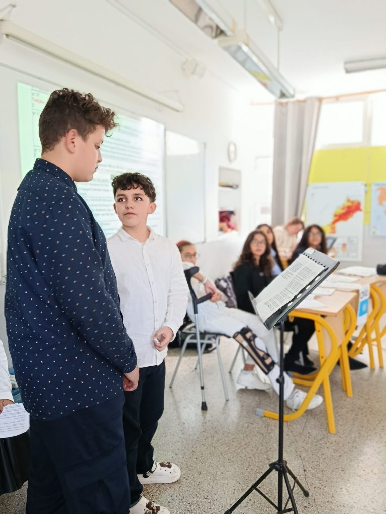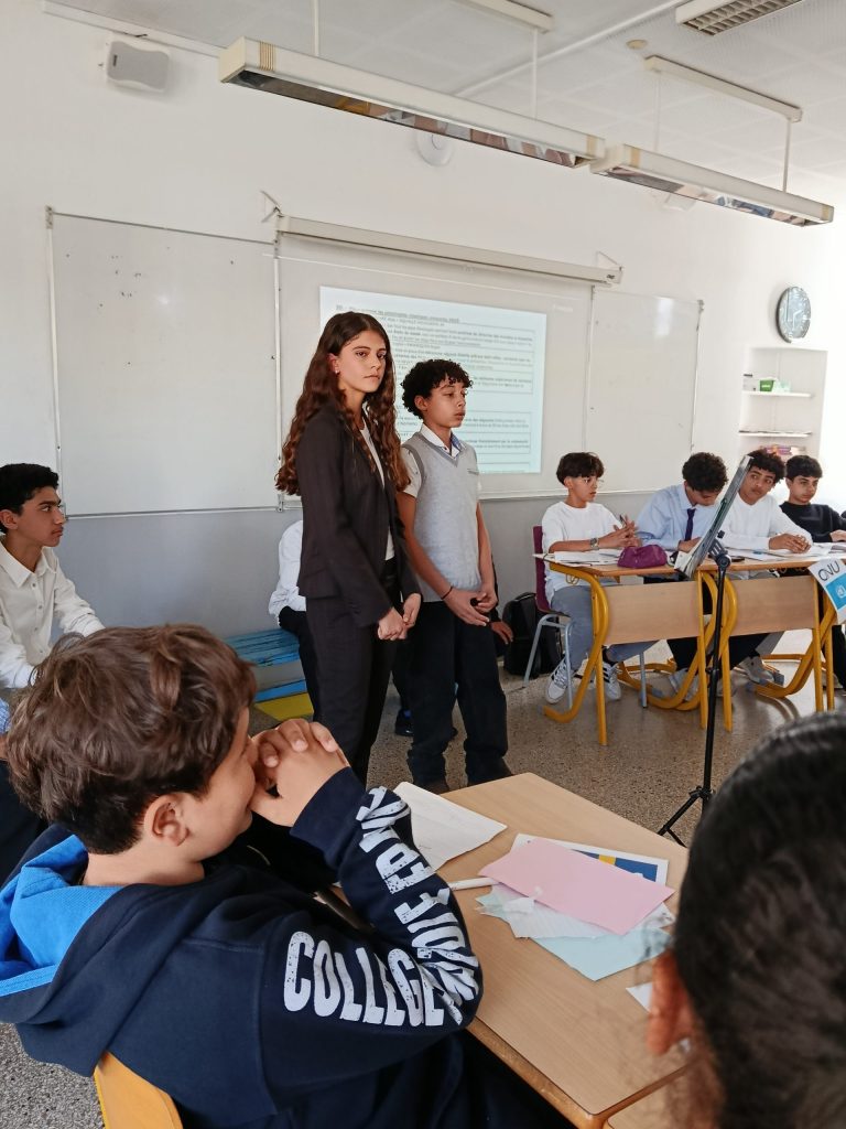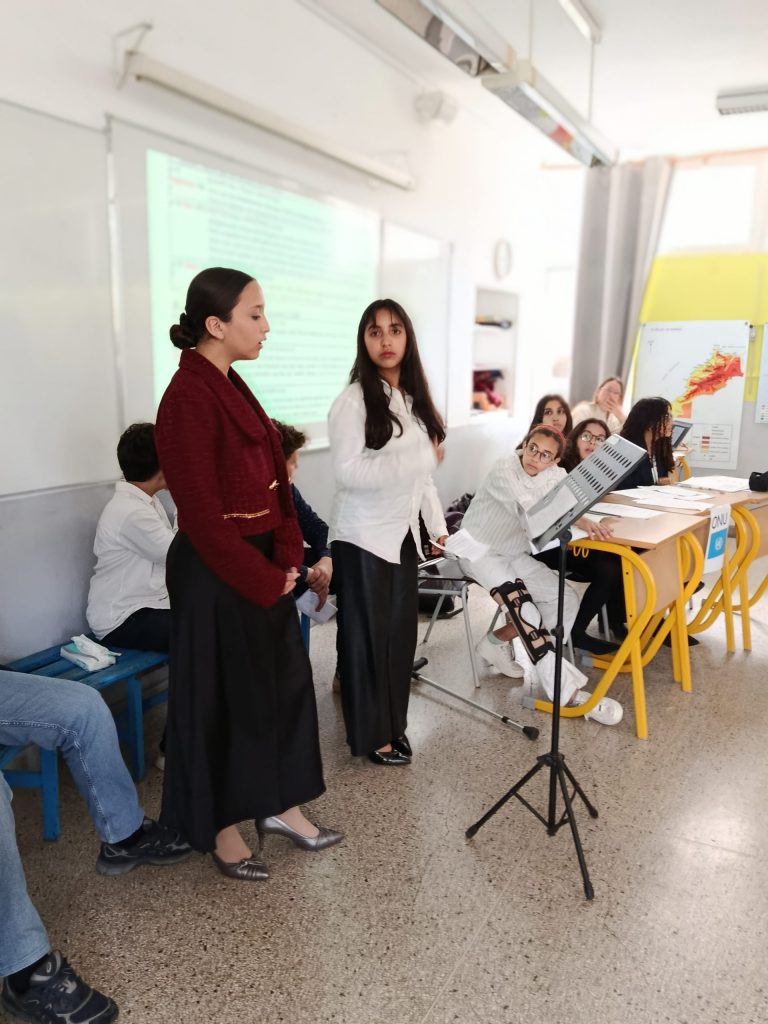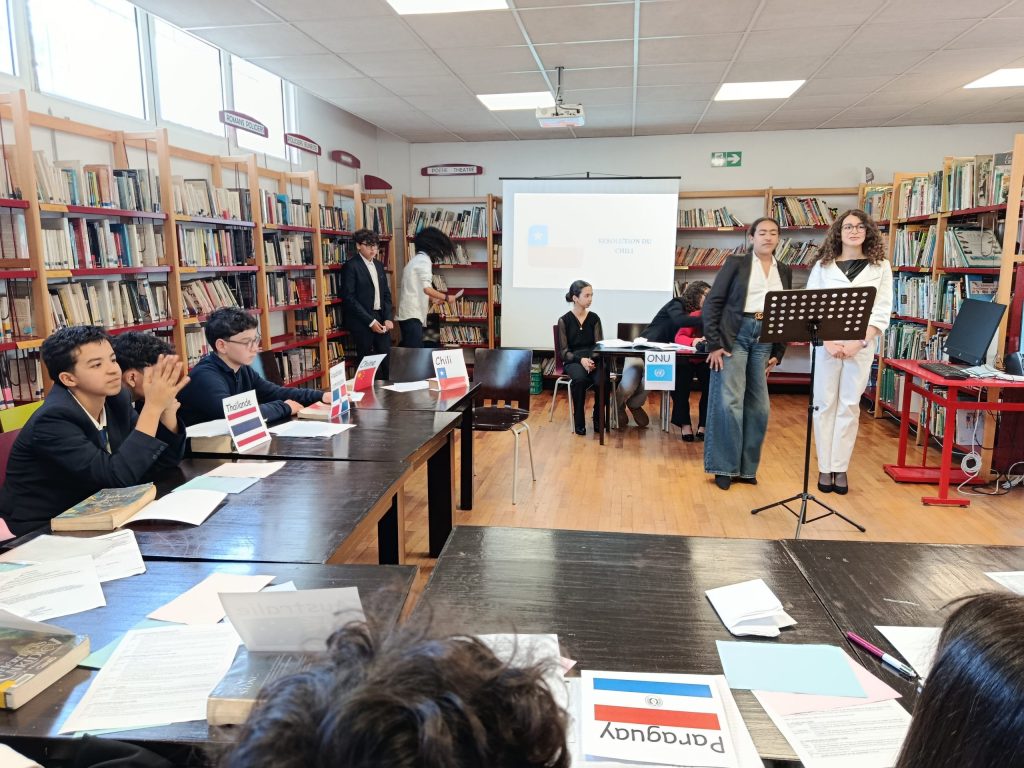 C’est ainsi les représentants de 18 ambassades du monde entier qu’ont incarnés nos apprentis-ambassadeurs à l’ONU. Les cours de Géographie en français et en arabe ; mais également les cours d’Anglais et de Français ont servi de rampe de lancement à ce beau projet riche en leçons. Thaïlande, Chine, Tadjikistan, Corée du Sud, Mexique, Chili, Paraguay, République dominicaine, Italie, Irlande, Pologne, Suède, Tunisie, Tanzanie, Togo, Afrique du Sud, Australie et Kiribati ont pu proposer leurs solutions d’avenir.