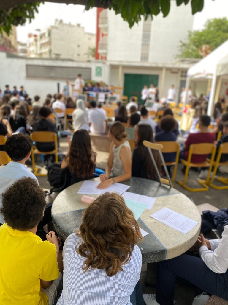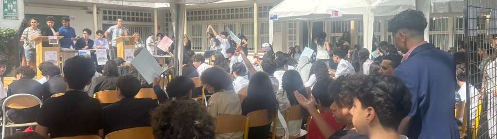 Dès 8h45, les délégations se sont installées et les discours d’ouverture ont lancé la journée. Neuf résolutions ont ensuite été débattues en plénière, chacune présentée par un groupe d’élèves incarnant un pays. Une fois l’idée présentée les débats ont commencé avec des élèves intéressés et persuasifs.