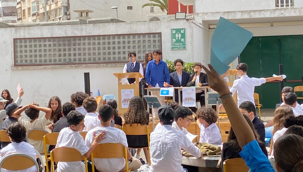 Répartis en délégations représentant différents pays, les élèves de cette année ont débattu de sujets d’actualité allant de l’intelligence artificielle aux politiques climatiques, en passant par les migrations ou l’agriculture durable.